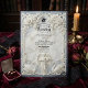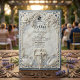 Définissez un ton de grande élégance pour votre mariage à la propriété avec ce design présentant une fausse arche baroque en bas-relief, des anges musiciens et une palette bleue romantique. Ce design présente une simulation imprimée très détaillée de sculpture architecturale classique. Une arcade centrale, rendue dans le style du plâtre blanc 3D, encadre les détails du texte sur un fond bleu poussiéreux factice. L'œuvre d'art comprend des effets de bas-relief complexes de roses blanches en fleurs, de rinceaux d'acanthe et de deux cygnes à la base. Au sommet de la colonne, un ange chérubin jouant du violon ajoute une touche de mouvement. La typographie mélange un script de calligraphie orné avec une police serif traditionnelle en gris charbon foncé pour la lisibilité. Il s'agit d'une image imprimée plate avec un effet de texture de pierre factice