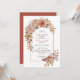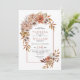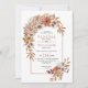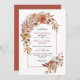 Cette belle faire-part de mariage dispose d'une arche de style boho avec des fleurs automnales et des feuilles. Le design est orné de dalia et de fleurs roses, ainsi que de feuillage dans de jolies teintes automnales. Le dos de l'invitation est une couleur terre cuite solide. Ce design séduisant est sûr de donner le ton pour une journée de mariage magique.