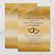 Invitez vos amis et votre famille à une belle fête d'anniversaire de mariage de 50 ans avec une touche dorée. Personnalisez cette invitation d'anniversaire élégante et unique avec les noms du couple, l'adresse de l'événement, l'heure et la date de la fête, ainsi que d'autres textes modifiables selon vos besoins. J'ai créé spécialement pour vous ce design original moderne à l'arche élégante avec des tons dorés sur un fond dégradé beige. Ce n'est pas une feuille d'or véritable. La typographie noire contemporaine et simple peut être modifiée. Les deux cœurs entrelacés ajoutent une touche romantique. L'écriture élégante et simple indiquant "50 ans de célébration" peut être modifiée pour tout autre nombre d'années d'anniversaire si nécessaire.