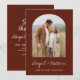 Personnalisez cette arche de photo marron terracotta bohème simple et élégante pour l'invitation Save The Date recto-verso avec votre message et vos détails. Cette invitation chic comprend une typographie moderne et élégante à la main pour la célébration spéciale du mariage à venir.