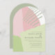 Un blocage Abstrait des couleurs dans une palette de couleurs joyeuses de rose rose et vert printemps fournit un arrière - plan frappant pour les pièces de cette suite mariage contemporaine. Le faire-part de mariage en arc de cercle ici est parfait pour la mariée qui projette un mariage printanier moderne. Ajoutez facilement tous les détails de votre événement en utilisant le modèle fourni. Recherchez ID740 pour voir d'autres options de couleur et d'autres produits avec cette conception.