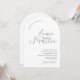 Présentez votre fête mariage avec une élégance intemporelle à l'aide de notre Faire-part de mariage en forme d'arc. Cette invitation exquise est conçue pour les couples qui apprécient la beauté de la simplicité et du raffinement. La silhouette d'arc unique offre une présence gracieuse et contemporaine, assurant qu'il capte l'attention et sert de gardien chéri à vos invités. L'arrière - plan blanc immaculé offre une toile classe et élégante, qui complète parfaitement le design minimaliste et améliore l'esthétique générale. Le choix du texte noir apporte une touche de sophistication classique, assurant ainsi la clarté et le style des détails mariages. Au coeur de ce design se trouvent les noms élégamment scénarisés de la mariée et du marié. Ce choix de police ajoute une touche personnelle et intime, faisant de vos noms le point central de l'invitation avec une grâce sobre. Idéal pour une variété de thèmes mariages, des célébrations de la ville chic aux rassemblements de jardin intimes, le design intemporel de cette invitation lui assure un complément de style tout en ajoutant une touche d'élégance contemporaine. Invitation vos proches pour célébrer votre journée spéciale avec notre Faire-part de mariage en forme d'arc, où l'élégante simplicité rencontre classe intemporelle. Laissez cette belle invitation donner le ton à un mariage rempli d'amour, de joie et de souvenirs inoubliables.
