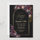 Invitation vos amis et votre famille pour assister à votre douche nuptiale avec cette élégante invitation à l'arc. L'invitation présente une belle décoration florale aux tons violets et bordeaux sur un arrière - plan noir. Vous pouvez ajouter sans effort tous les détails nécessaires au texte personnalisable. Pour rendre vos invitations uniques, vous pouvez choisir parmi différents types de papier et styles d'angle. En outre, vous avez la possibilité de télécharger l'invitation.