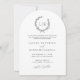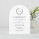 Élégante et classique couronne de feuilles monogramme noir et blanc invitation de mariage en arche avec code QR.