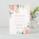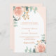 Une élégante invitation au mariage. Un arrière - plan d'or rose, et une arche blanche. Décoré de roses aquarellés et de verdure d'eucalyptus.