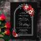 Invitation vos amis et les proches à votre mariage avec cette faire-part de mariage moderne rouge floral noir et blanc arc.