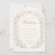 Add a romantic, garden-inspired touch to your special day with this arched floral wedding invitation, beautifully illustrated with soft pastel flowers, delicate greenery, and an elegant monogram crest at the top. The unique arch shape and balanced botanical frame create a timeless, storybook feel that’s perfect for couples who love refined, nature-inspired design.