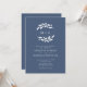 Ardoise Bleu Olive Branche Monogramme Faire-part de mariage... Notre faire-part de mariage à double face présente une couronne monographique en silhouette blanche de branches d'olivier sur un arrière - plan bleu ardoise chic suivi d'un texte d'invitation dans une élégante typographie serif et sans serif. Enregistrez du papier en incluant le code QR de votre site Web mariage au dos de l'invitation, permettant à vos invités à RSVP en ligne et de voir tous les détails généralement envoyés sur des cartes séparées dans le paquet mariage. L'exemple de code QR du site Web mariage et le texte d'invitation peuvent être facilement révisés avec vos propres détails en utilisant le modèle de personnalisation.