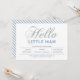 Célébrez une journée spéciale pour votre bien-aimé avec cette invitation baby shower moderne! Ce design présente une typographie élégante "Hello Little Man" en parties scintillant texture argentée et bleu doux.