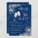 Salutations À 30 Ans ! Moderne et élégant, il présente d'élégantes fleurs argentées, des verres à champagne, des polices de caractères et des confettis. Personnalisez avec vos propres détails. Peut être customisé à n'importe quel âge.