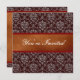 Invitation élégante avec look argenté Damask et arrière - plan marron. Une bande à l'avant de votre texte comporte de la peinture éponge/grunge sur crampe. Back a la même conception avec une zone de texte plus grande.