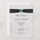 Invitation Argent Damask Black Ribbon Blue Jewel Mariage