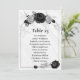 élégant gris argenté et noir fleurs assise carte numéro de tableau Les détails de la parties scintillant sont simulés
