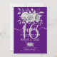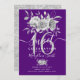 Elégante 16ème fête d'anniversaire Silver Floral & Parties scintillant sur modèle d'invitation violet.
