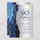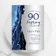 Invitation à la fête du 90e anniversaire en bleu et argent de la Marine. Elégant design moderne avec aquarelle bleu royal agate marbre arrière - plan, faux parties scintillant argent et typographie script police. Carte invitation branchée parfaite pour une célébration anniversaire féminine élégante. Invitations Zazzle imprimées ou téléchargement instantané modèle imprimable numérique.