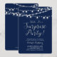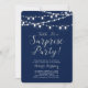 Célébrez une journée spéciale avec cette invitation de fête surprise moderne ! Ce design présente une typographie pailletée argentée élégante et des guirlandes lumineuses sur fond marine. Vous pouvez le personnaliser pour n'importe quel âge ou événement.