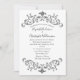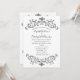 Une belle faire-part de mariage formelle argentée, noire et blanche fleurit. Modifiez le nom de la mariée et de la mariée, les détails du mariage et les détails de la réception.