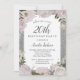 Invitation Argent rose étincelant Floral 20e anniversaire