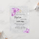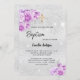Invitation Argent rose violet fleurs fille Baptême