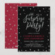 Célébrez votre jour spécial avec ce modèle d'invitation de fête moderne et élégant. Ce design présente des confettis argentés brillants avec un thème de couleur noir et rubis.