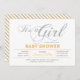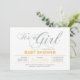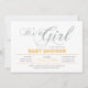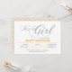 Célébrez une journée spéciale pour votre bien-aimé avec cette invitation baby shower moderne! Ce design présente une typographie simple mais élégante " It's a Girl " avec une texture de parties scintillant jaune et argent.