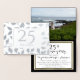Cartes d'invitation pour les 25 ans de mariage avec motif de feuille florale en typographie argentée ou dorée