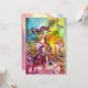 Peinture à l'aquarelle colorée, fantaisiste et vibrante dans des tons jaune vif, violet et bleu, inspirée du Carnaval de Venise. Arlecchina est la contrepartie féminine d'Arlequin