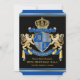 Invitation Armoiries royales Lion d'or bleu Emblème Anniversa
