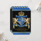 Créez votre propre armoiries, emblème, insignia ou crête de famille aristocratique avec ce magnifique escutcheon classique ou design de bouclier. Des motifs bleus de Cobalt décorent un bouclier surmonté d'une couronne dorée et flanqué d'un lion héraldique médiéval ou d'un griffon. Remplacez l'exemple de texte par le vôtre pour une conception personnalisée. Un design neutre pour les femmes qui conviendra aux familles, aux groupes, aux couples ou aux individus. Fait un merveilleux modèle pour Mariage, Anniversaire, Anniversaire, Retraite, Promotion, Fête des Pères, Bachelor Party, Wedding shower, Graduation, Journée Internationale de l’Heraldique, Fêtes médiévales ou d’Imaginaire et autres occasions spéciales.