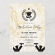 Un arrière - plan moderne et élégant sur le thème de la remise des diplômes, avec des silhouettes noires de diplômés titulaires d'un diplôme sur fond de marbre beige et blanc texturé. Le design est couronné d'une couronne de laurier, d'une casquette de remise des diplômes et d'une icône de diplôme, parfaite pour les invitations.