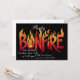 Une illustration numérique d'une invitation de fête de remise de diplôme de flammes de feu de joie Un design graphique comportant le mot feu de joie rendu en lettres enflammées et grasses.