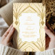 Annoncez votre journée spéciale avec un raffinement intemporel grâce à notre Elegant Mariage Art Déco Geometry White Gold Invitation. Cette magnifique invitation mêle le glamour classique de l'époque Art Déco avec des éléments design modernes, créant un parfait mélange d'élégance et de style. Notre faire-part de mariage est composée de motifs géométriques complexes en blanc et or luxueux. Le design d'inspiration Art Déco apporte une touche de charme vintage tout en conservant une atmosphère contemporaine. Imaginez le plaisir de vos invités quand ils reçoivent cette invitation exquise, donnant le ton pour une célébration de mariage mémorable et élégante. Conçues à partir de cartons de qualité supérieure, nos invitations se sentent aussi luxueuses qu'elles en ont l'air. La finition lisse et la texture riche rehaussent l'esthétique globale, assurant ainsi que votre invitation se démarque. Les accents dorés apportent une touche d'opulence, faisant de chaque carte un souvenir que vos invités apprécieront. La personnalisation est la clé de voûte de notre Elegant Mariage Art Déco Géométrique White Gold Invitation. Customisez-le avec vos noms, votre date de mariage et un message sincère pour créer un faire-part unique et significatif. Chaque invitation est soigneusement conçue pour refléter votre style personnel et l'importance de votre journée spéciale. Envoyer ces invitations est simple et élégant. Chaque ensemble est livré avec des enveloppes assorties, assurant une présentation cohésive et polie. La construction robuste garantit que vos invitations arrivent en parfait état, prêt à impressionner vos invités. Faites de votre mariage une journée inoubliable avec notre Elegant Mariage Art Déco Géométrique White Gold Invitation. Célébrez dans le style et le raffinement, préparant le terrain pour un événement vraiment mémorable. Commandez votre set aujourd'hui et laissez vos invitations refléter la beauté et l'élégance de votre histoire d'amour. N’attendez pas - créez une première impression inoubliable avec nos excellentes invitations de mariage !