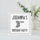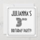 L'avant de ce luxueux style des années 1920-1930 inspiré par la conception de cartes d'invitation pour fêtes et fêtes d'anniversaire comporte un nom modifiable, un style art déco fantaisie inspiré numéro "3e", le message "Fête d'anniversaire !", et un motif frontalier composé de lignes. Le verso présente des détails personnalisés sur l'événement, tels que la date, l'heure, le lieu/lieu et toute autre information importante. Des invitations luxueuses, élégantes et customisées comme celles-ci pourraient être utilisées pour les participants invitations/invités à un rassemblement d’anniversaire organisé pour honorer le 3e anniversaire de quelqu’un. [~Z0000614]