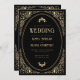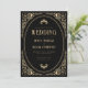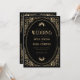 Un faire-part de mariage moderne et chic avec des bordures d'art déco en faux or et des polices vintages.