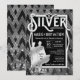 Célébrez vos Noces d'Argent avec ce design unique de style Art Déco, inspiré de Gatsby le Magnifique, avec un motif géométrique en paillettes d'argent sur fond noir classique, et la silhouette d'un couple des Années folles. Un look élégant, chic et thématique, parfait pour commémorer vingt-cinq ans de vie commune avec le goût du jazz des années 1920.