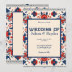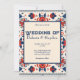 Invitation de mariage, rouge, blanc et bleu, floral géométrique d'art folklorique. Unique, chic bohème.