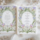 Découvrez l'élégance intemporelle de l'époque Art Nouveau avec ce faire-part de mariage à la décoration exquise. La carte est ornée d'un cadre symétrique de fleurs d'aquarelle peintes à la main dans des tons doux de bleu périvent, lavande et rose, gracieusement entrelacées avec des tiges vertes coulantes. Vos détails mariages sont magnifiquement présentés dans une forme ovale classique, accentuée d'une délicate bordure en faux or. Ce design artistique et romantique est parfait pour un mariage de jardin sophistiqué, une célébration à thème vintage, ou pour tout couple qui désire une touche de style classique et artistique. Tout le texte, y compris le monogramme, est entièrement personnalisable pour annoncer parfaitement votre journée spéciale.
