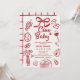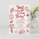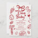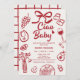 Poignée à la main Articles en crosse rouge Ciao Baby Baby shower Invitation Poignée rouge ciao invitation baby shower bébé avec divers articles de bébé dessinés à la main et de la nourriture. Cette jolie invitation au baby shower dessiné à la main est idéale pour un baby shower d'inspiration italienne.