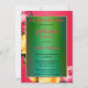 Une invitation fantaisiste et artistique de remise de diplômes de design avec un arrière - plan de texte stylisé vert encadré de roses jaunes et roses sur un arrière - plan fuchsia néon brillant. Aussi belle pour une fête d'anniversaire.