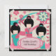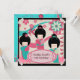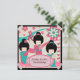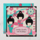 Assez dans les invitations asiatiques roses et bleues d'anniversaire de filles comportant plusieurs filles asiatiques dans des kimonos, des oiseaux et des poissons d'origami, des fleurs de cerisier, et des secteurs vous pouvez facilement ajouter vos détails de fête d'anniversaire à la personnaliser !