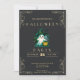 Invitation vos invités à une fête magique et enchanteresse d'Halloween avec cette invitation à la fête amusante et moderne sur le thème du tableau noir. L'arrière - plan noir en damier profond crée une atmosphère éffrayante mais élégante, tandis que le défilement délicat dans les quatre coins ajoute une touche de sophistication. Le simple texte en or se démarque magnifiquement, rendant les détails de votre événement clairs et élégants. Au coeur du design se trouve un adorable fantôme, portant un casquette de sorcier et tenant un livre magique, ouvrant la voie à une nuit remplie de sorts et de mystère. Le fantôme est entouré de chauves-souris clignotantes, d'étoiles scintillantes et d'une lanterne clignotante, créant une scène d'Halloween fantasque et ludique qui capture l'esprit à la fois de plaisir et de magie. L'arrière de l'invitation poursuit le thème noir chalkboard élégant, offrant un look poli et cohésif. Cette invitation marie parfaitement le charme d'Halloween avec une touche de mystique, pour que vos invités soient excités pour une nuit de magie éffrayante, de plaisir et de surprises !