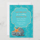 Une annonce marine Save the Date avec une touche tropicale. Le arrière - plan abstrait bleu-vert est recouvert d'une floraison bleue qui contient vos informations et est agrémenté d'une collection de coquillages et d'un poisson étoilé orange.La carte est facile à customiser avec votre libellé, police, couleur de police et choix de six types de papier.