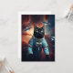 Une image captivante d'un chat noir habillé en astronaute, regardant avec confiance dans le cosmos. Entouré de soucoupes volantes et d'une nébuleuse vibrante, le chat incarne un sentiment d'aventure et de mystère.