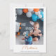 L'astronaute Blue Photo First Trip Autour du Soleil Anniversaire Invitation de premier anniversaire dans l'espace extra-atmosphérique pour bébé garçon avec un astronaute, vaisseau spatial, planètes et soleil. Ce premier voyage autour de l'invitation d'anniversaire du soleil comporte également une photo au dos.