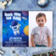 Faites décoller votre anniversaire avec cette invitation hors du monde. Tous les éléments et l'arrière-plan sont des créations originales et dessinés numériquement pour capturer l'atmosphère d'un voyage interstellaire dans l'espace.
