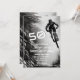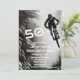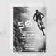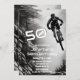 Cette invitation à la fête du 50e anniversaire de VTT présente un croquis crayon d'un VTT attrapant l'air sur un sentier extraordinaire.