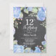 Invitation au 12e anniversaire de la florale Bleue Botanique. Floral Pink Peonies Invitation d'anniversaire pour filles. Fleur florale aquarelle. Fleurs de roses et de pivoines élégantes.Anniversaire enfant. Arrière - plan de tableau de bord. Noir et Blanc. 13e 15e 16e 18e 20e 21e 30e 40e 50e 60e 70e 80e 90e 100e, n'importe quel âge.