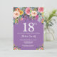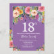 Invitation florale violette 18e anniversaire pour les femmes. Fleur florale aquarelle. Arrière - plan violet Lilac Lavender Violet. Rose, Jaune, Orange, Fleur Violet. Anniversaire adulte. 13e 15e 16e 18e 20e 21e 30e 40e 50e 60e 70e 80e 90e 100e, n'importe quel âge.