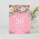 Invitation à l'anniversaire du 50e anniversaire de la surprise de la flore rose. Fleur florale aquarelle. Arrière - plan rose. Rose, Jaune, Orange, Fleur Violet. Anniversaire adulte. 13e 15e 16e 18e 20e 21e 30e 40e 50e 60e 70e 80e 90e 100e, n'importe quel âge.