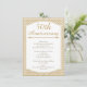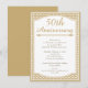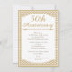 Cette invitation pour le 50e anniversaire de mariage présente un cadre blanc avec une fine bordure dorée et un fond à motif brun doré et blanc. Le design comprend un séparateur décoratif sur la moitié supérieure. Il est prêt à être personnalisé et convient pour un 50e anniversaire de mariage.